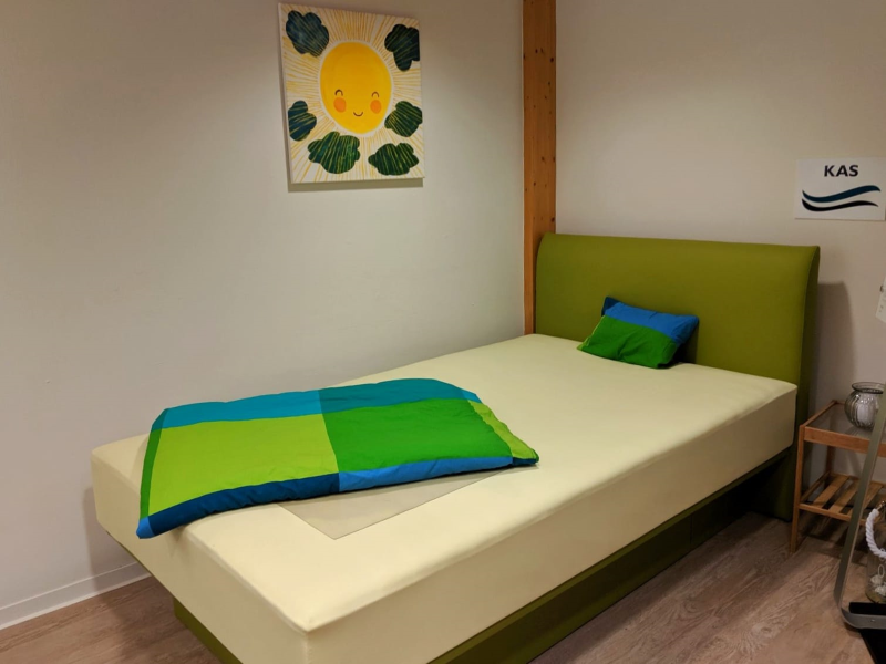„Ganz wichtig ist das Nachstellen der Wassermenge: Die Matratze wird dauerhaft erwärmt, um immer mindestens 28 Grad zu erreichen. So wird gewährleistet, dass dem Körper keine Wärme entzogen wird und der Kreislauf nicht leidet. Bei dieser leichten Erwärmung fällt Sauerstoff aus, diffundiert durch das Vinyl und die Wassermenge verringert sich. Um den Komfort also dauerhaft zu gewährleisten, muss die Wassermenge ungefähr einmal im Jahr nachkorrigiert werden.“